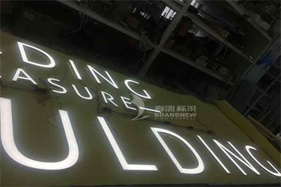 背發光字是LED精品字最常見的一款字,它是通過不銹鋼字和LED燈反向組合面構成的字。形像的說,它是沒有亞克力面板的不銹鋼發光字。今日奔流標識廠家主要為您介紹我司的背發光字。