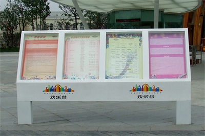 用于廣告性質的宣傳欄,照明必定要有的,頂棚可以根據需求設置,燈箱里設備滾軸體系,這樣一個箱體里可以放多張廣告,使收益化。但一般的宣傳欄一般用不著裝滾軸體系,一是本錢高,平常還要費電;二是不必那么高頻率的替換畫面,人工根據需求替換就可以了。